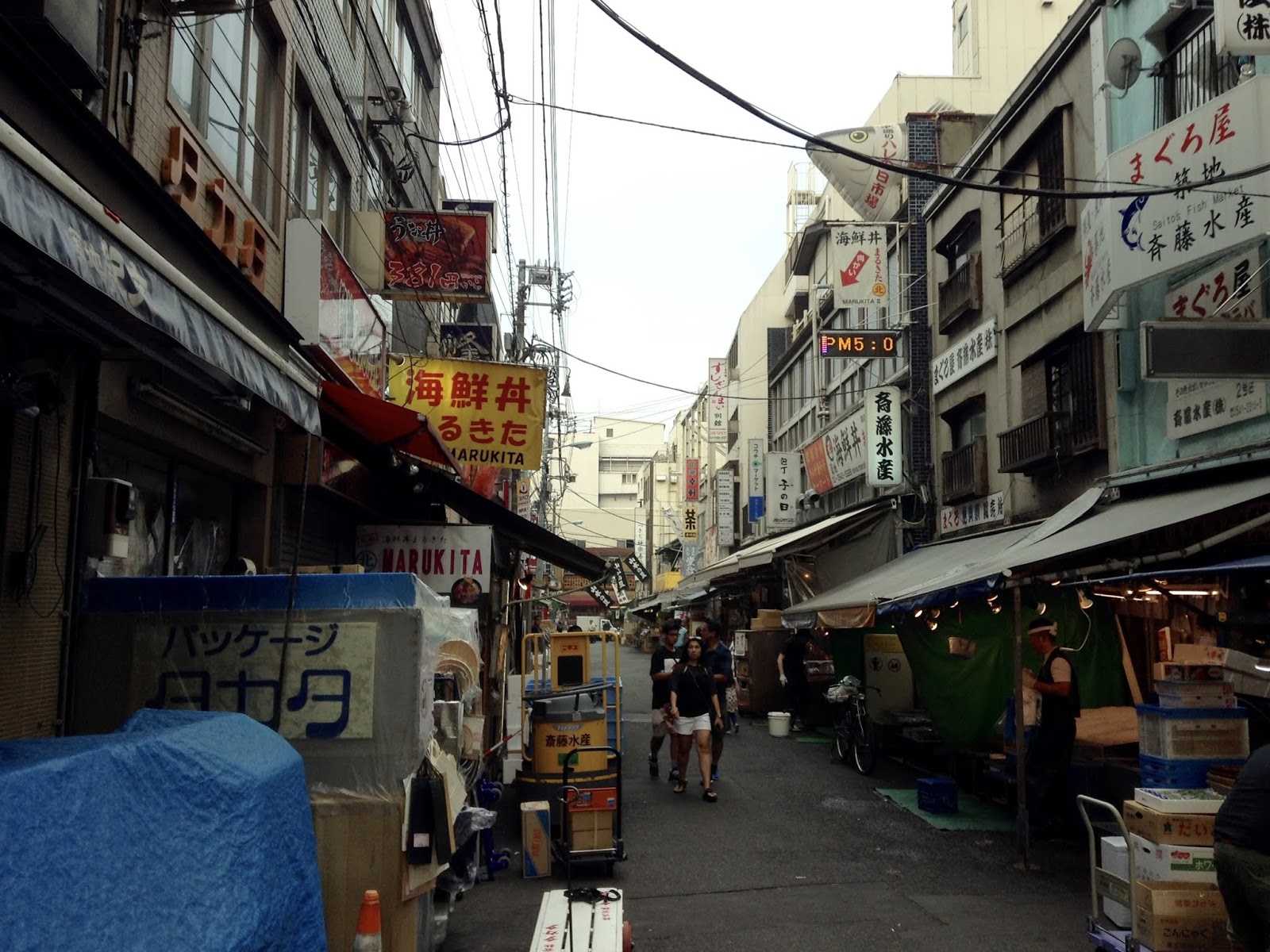 | Tokyo's Tsukiji Outer Market first thing in the morning. Frequent flyer miles got me there. |